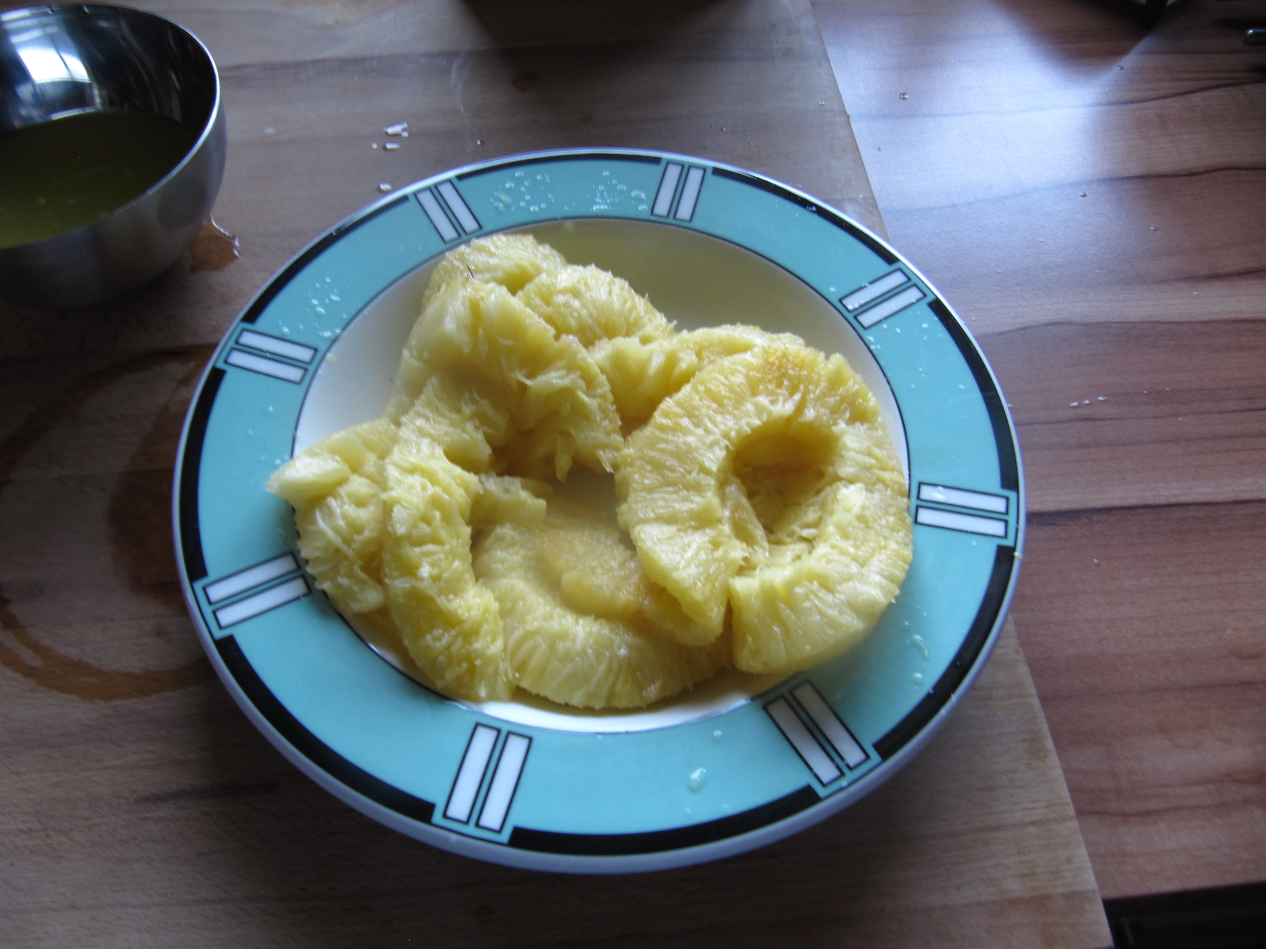 1 Hawaii Ananas (Enden abgeschnitten und mit Ananasschneider spiralig geschnitten)