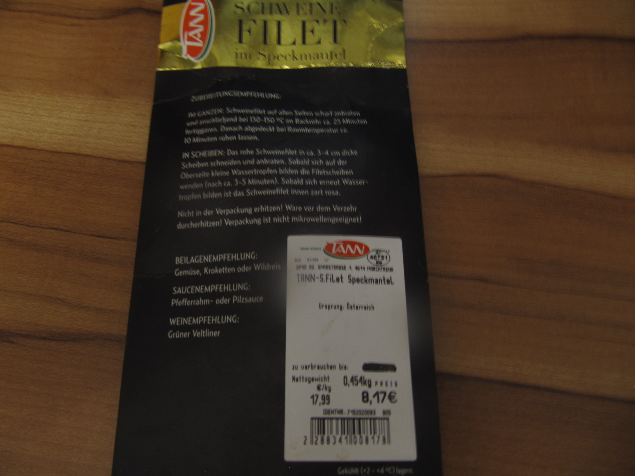 Zutaten und Zubereitung Schweinsfilet: