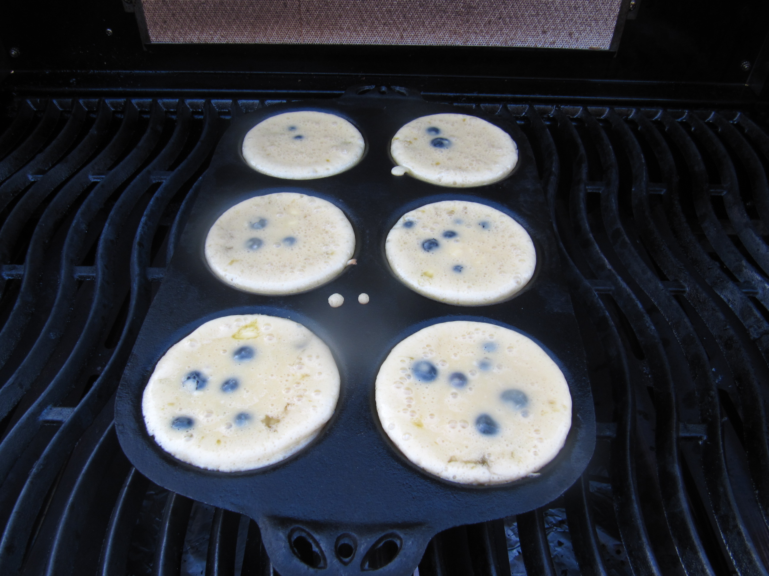 Gegrillt auf Gasgrill Napoleon LE 3. Zubehör: Pan-Cake Pfanne aus Gußeisen (hat sich bewährt, die Pancakes schmeckten köstlich, diese Pfanne kommt sicher bald wieder zum Einsatz. Dank an meine Tochter!)