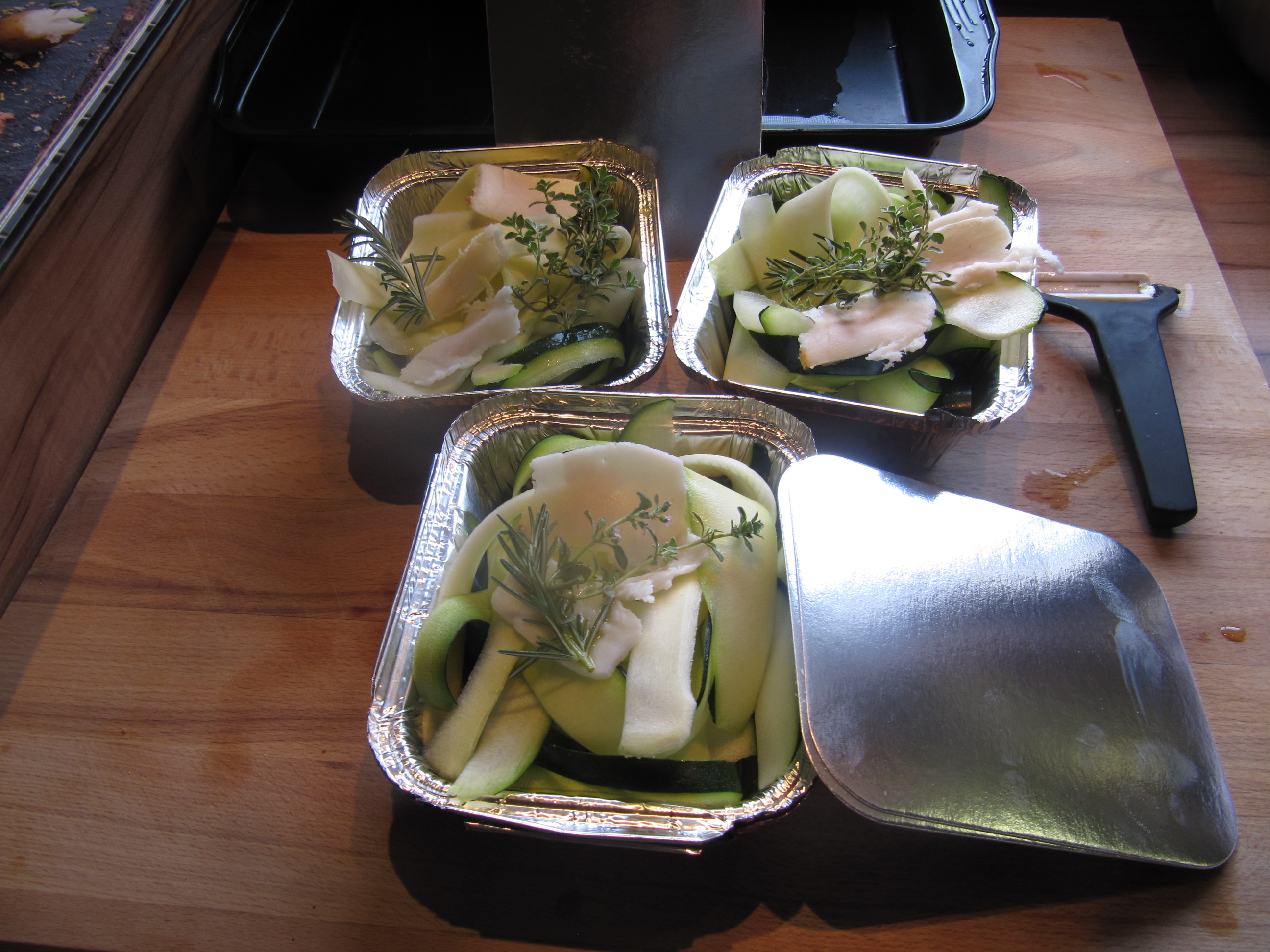 Alle Zutaten in 3 kleine Aluschalen mit Deckel geben, 25 Minuten bei mittlerer indirekter Hitze grillen.
