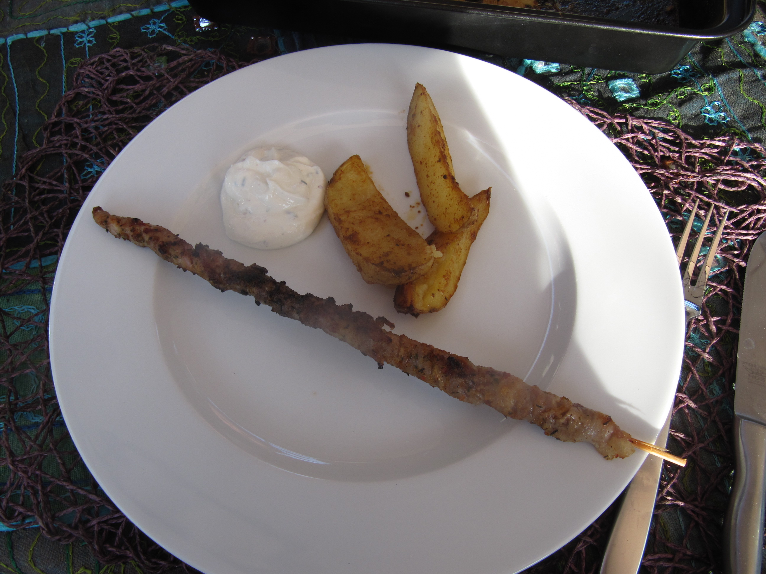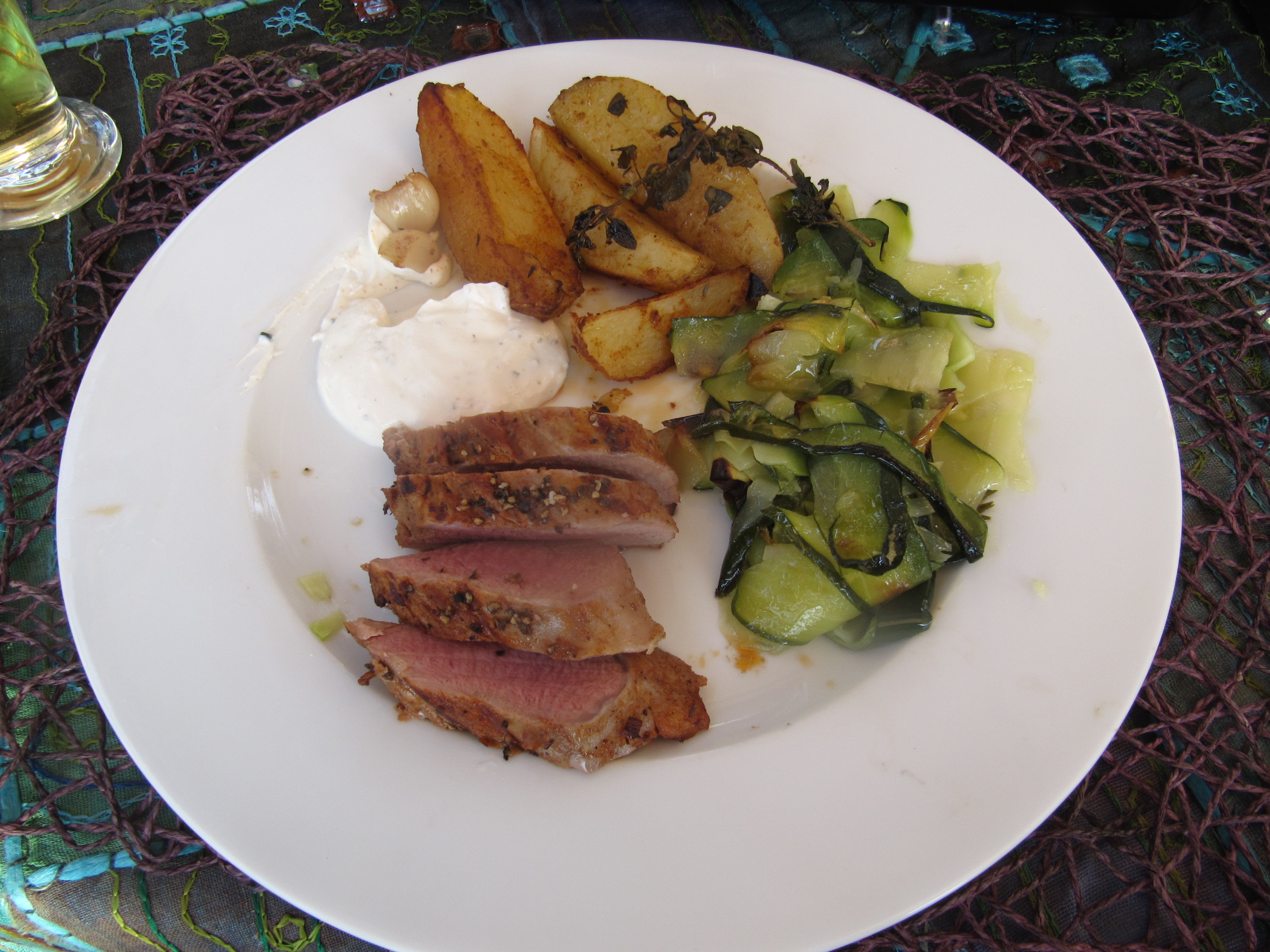 heute gibt´s Schweinefilet, Potato-Wedges, gedämpftes Gemüse und Grillfackel.