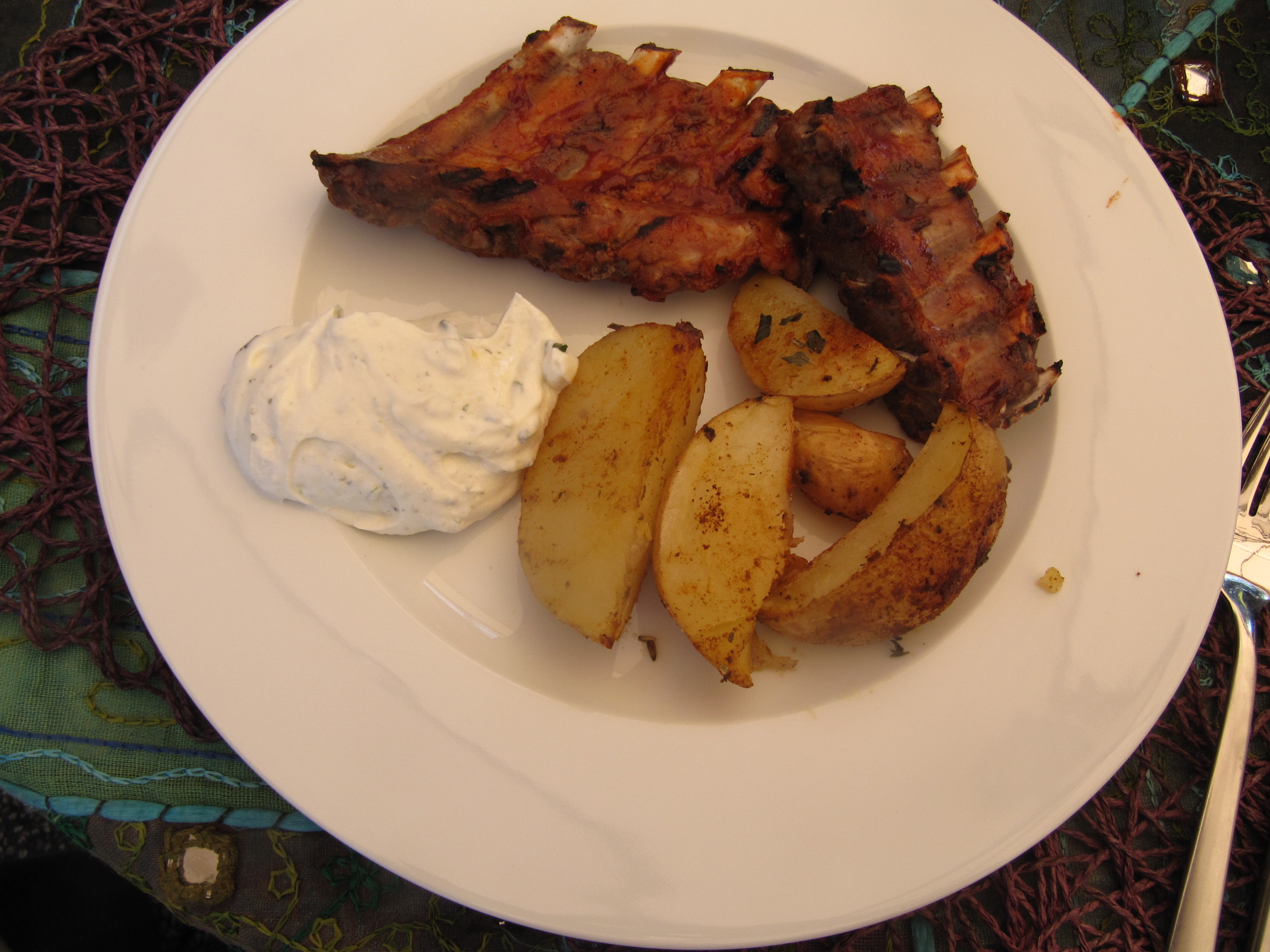 heute mache ich schnelle Spareribs. Durch Vorkochen sind sie schneller fertig, werden jedoch nicht so knusprig und weich als welche, die 2,5 – 3 Stunden indirekt bei niedriger Temperatur gegrillt werden.