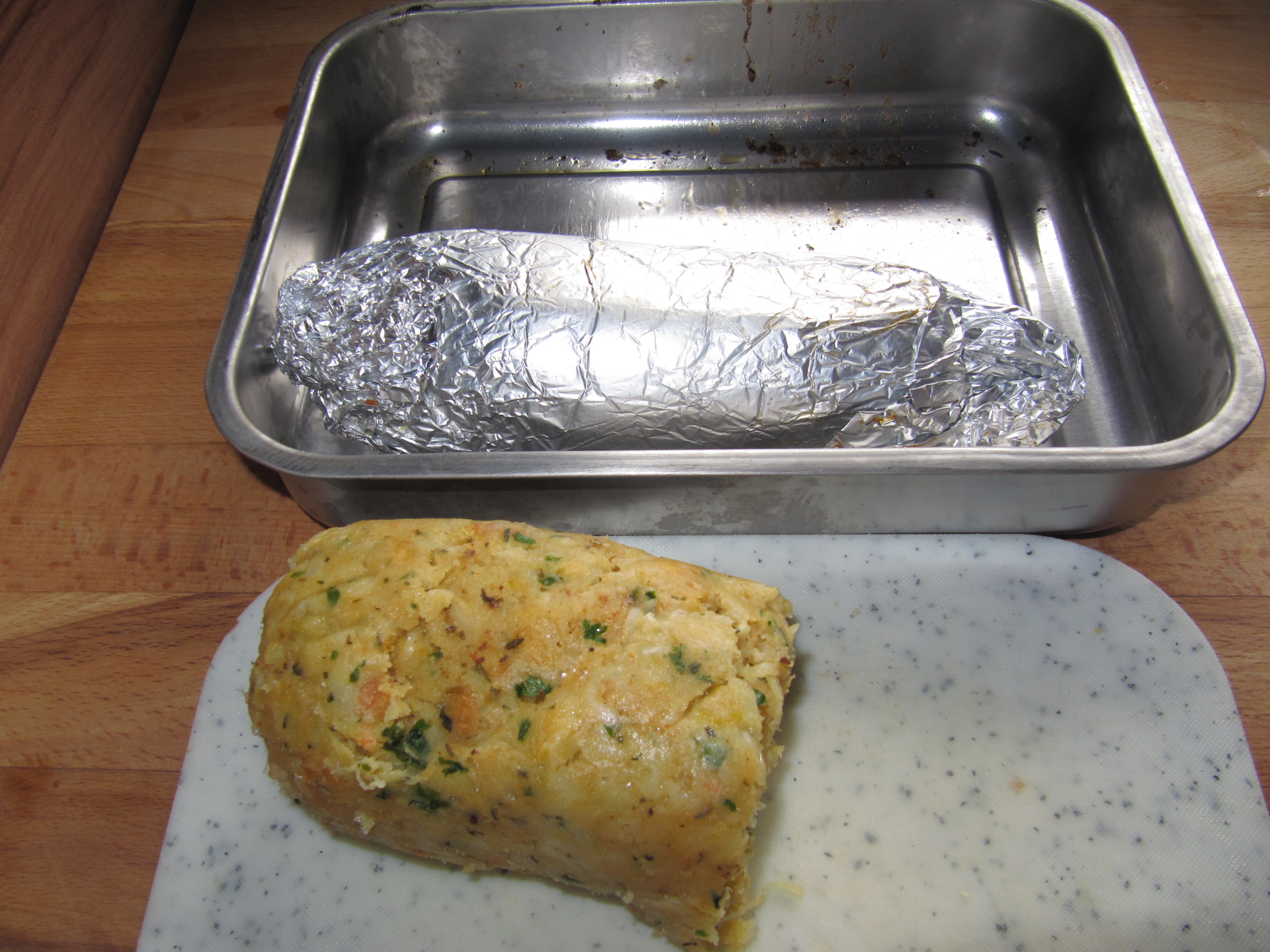Semmelwürfel salzen, Eier und Milch verquirlen, darübergießen, durchmischen und ziehen lassen. Zwiebel mit Butter anrösten, mit Petersilie und Kümmel dazugeben. Käse zugeben, Masse mit Mehl binden und noch 10 Min. ziehen lassen. 2 Rollen formen und in Alufölie eindrehen. Bei mittlerer indirekter Hitze ( ca. 180°C ) 30 Min. bei geschlossenem Deckel grillen. Danach in Scheiben schneiden und servieren. Tipp: Man kann die Scheiben auf der heißen, eingeölten Gußplatte noch knusprig braun grillen und mit zerlassener Butter und Parmesan servieren. Zutaten des Rezepts reichen für 4 Personen. Salat passt gut als Beilage dazu.