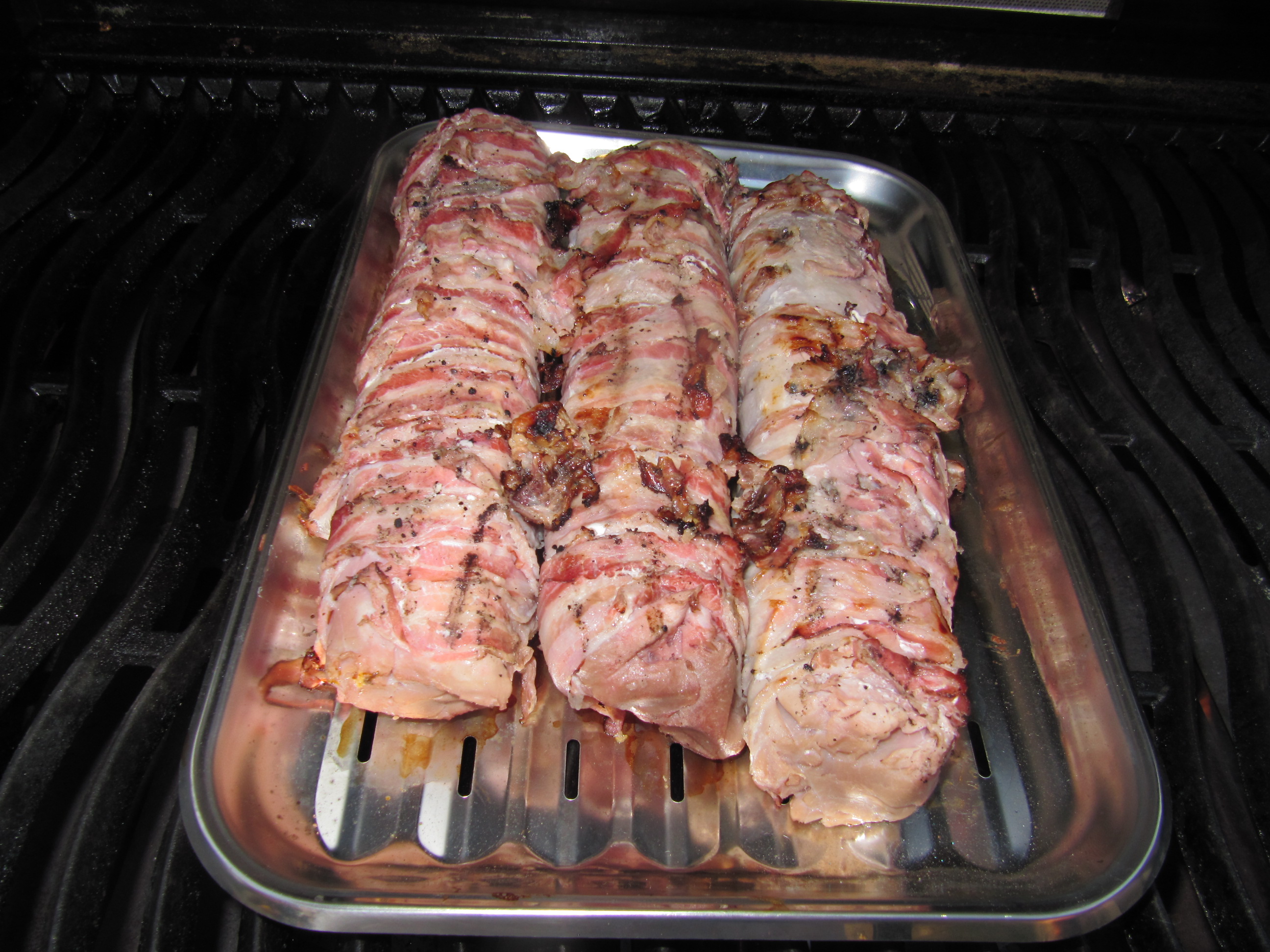 3 Schweinefilets je 600 g, in Speck gewickelt