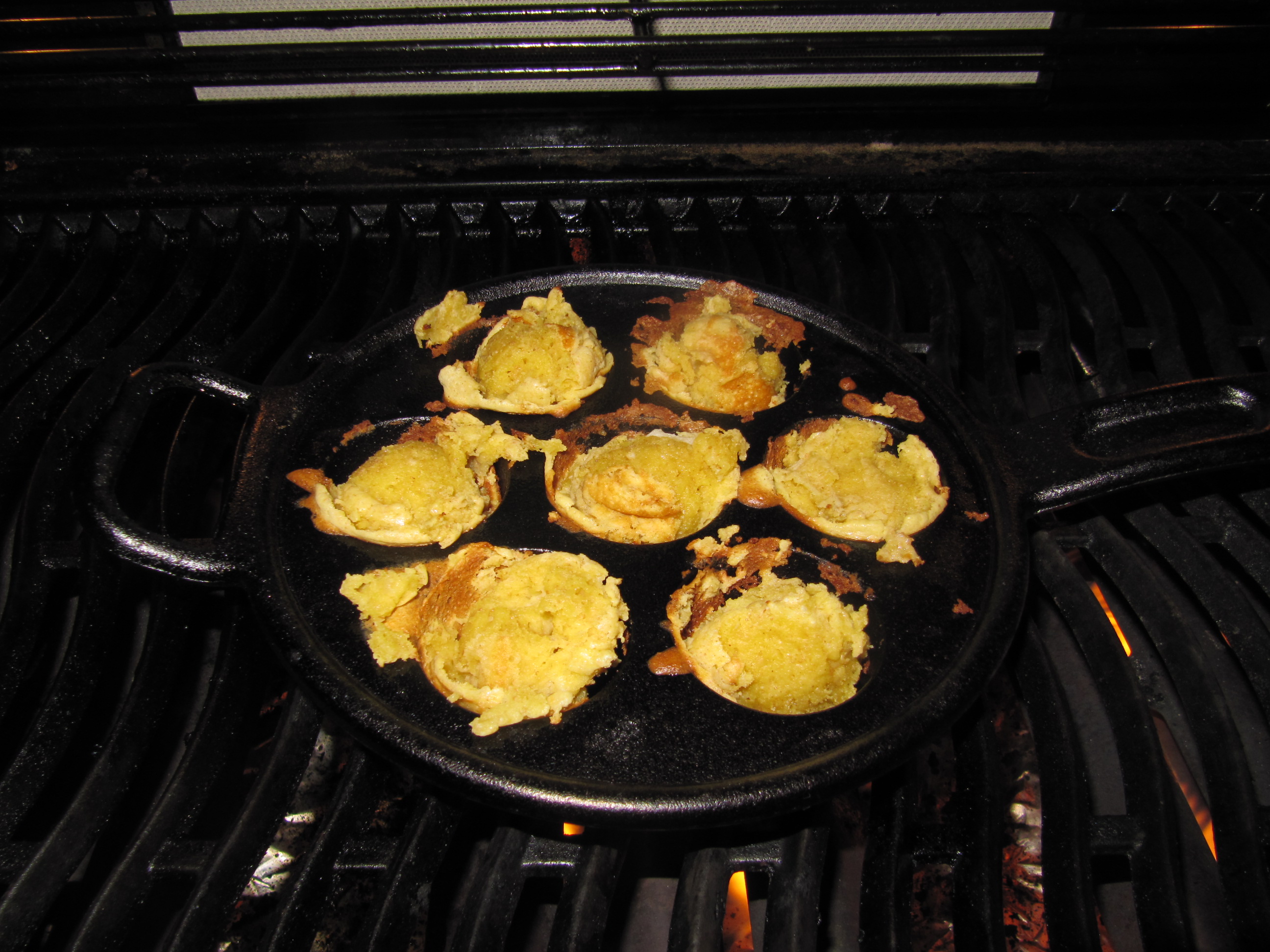 Ebelskiver-Einsatz bei mittlerer, direkter Hitze auf dem Rost 10 Minuten vorheizen. In alle Mulden 1 TL Kokosfett geben, erhitzen und mit Gefühl den Teig einfüllen. Die Ebelskiver sollten an der Unterseite eine gebräunte Kruste haben, bevor sie umgedreht werden. Das geht am besten mit einem Doppelspieß. Die bis jetzt noch flüssige Oberseite wird nun ebenfalls durchgebacken. Wichtig : Während der Zubereitung bleibt der Deckel des Grills geöffnet ! Mit Staubzucker bestreuen und mit Blaubeeren, Erdbeeren oder Ahornsirup servieren. Tipp : Es kann auch noch Marillenmarmelade injiziert werden !