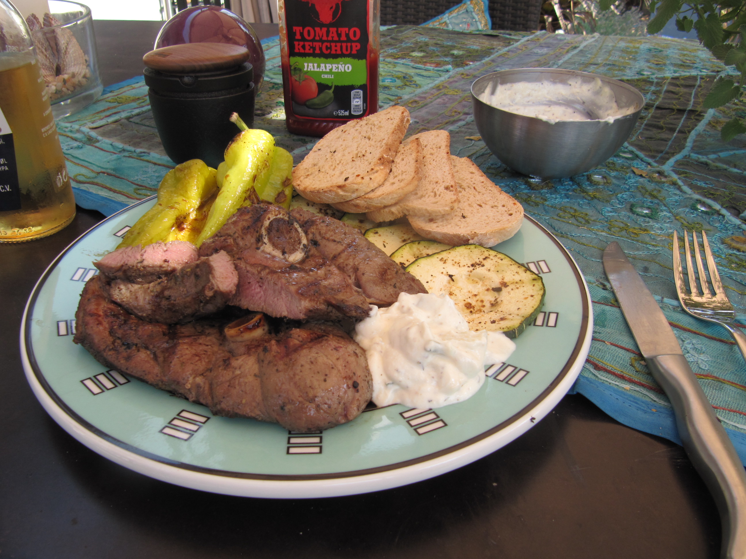 da ich an diesem Tag frei hatte und allein zu Hause war, Hunger und Lust auf saftiges Lammsteak hatte, kam dieses Gericht zustande.