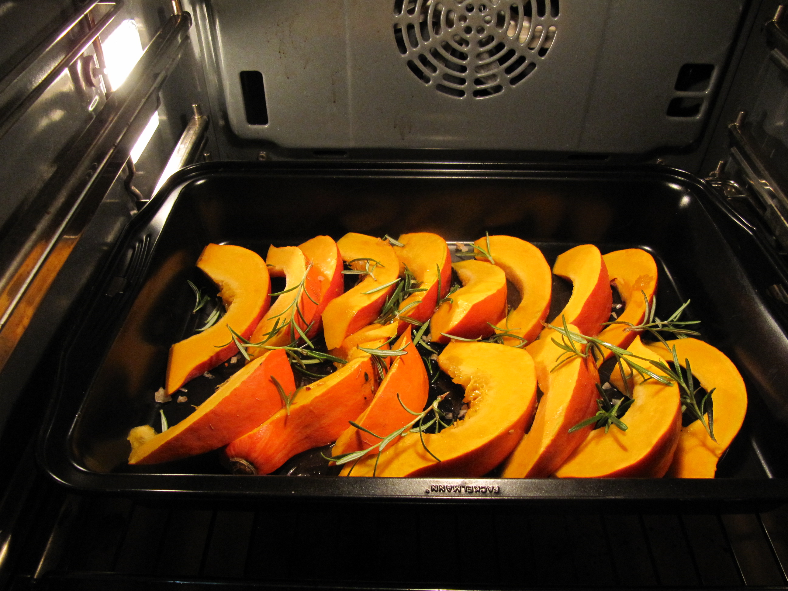 1 Hokkaidokürbis in Schnitten zerteilen, Kerne entfernen, mit 3 TL griechischem Vulkan-Chilisalz bestreuen und mit 2 Rosmarinzweigen belegen. 30 Min. bei 180°C Ober- und Unterhitze im Backrohr backen. Mit Lammnieren, Hühnerspießen und Kartoffelpürree servieren.
