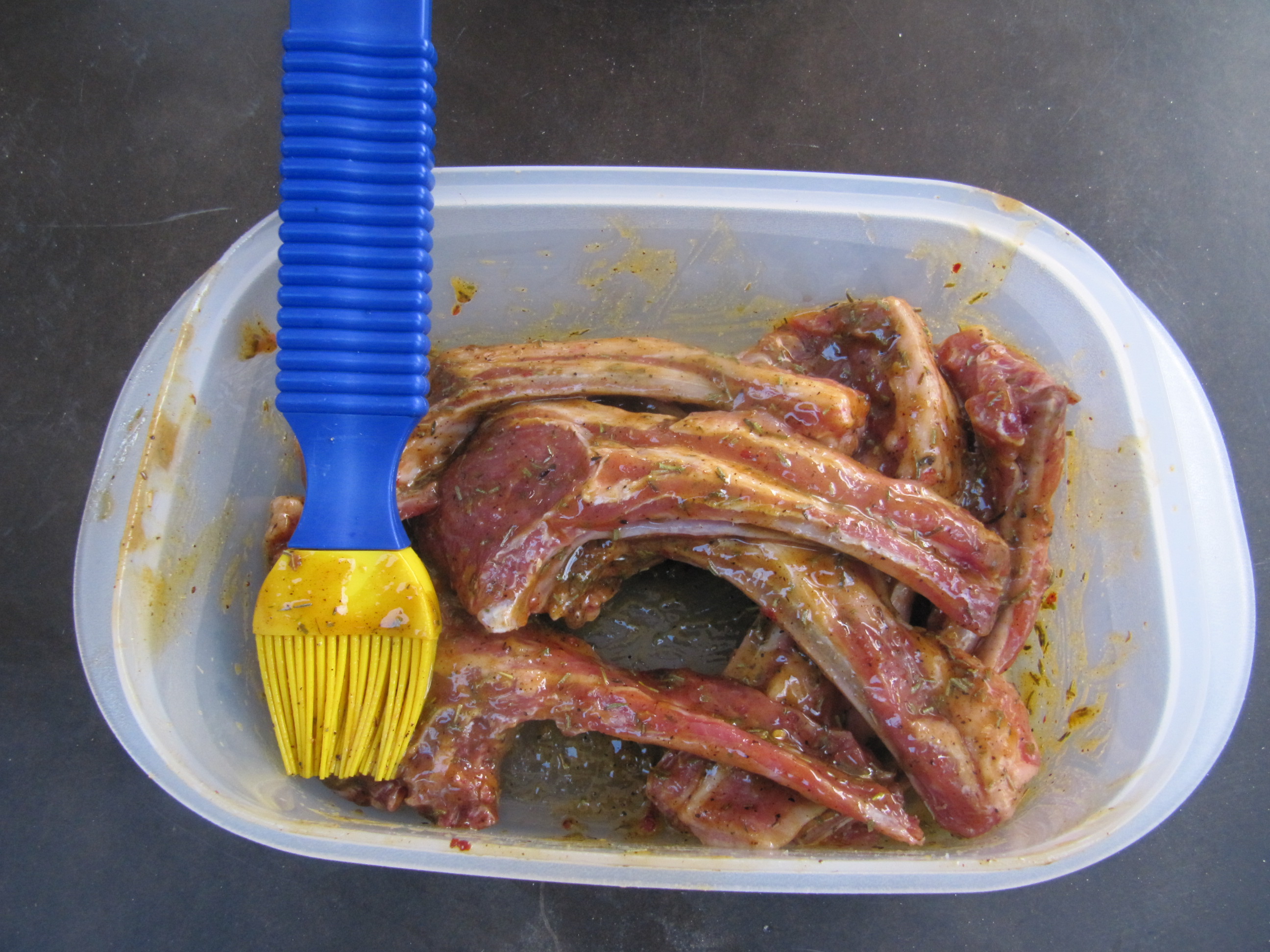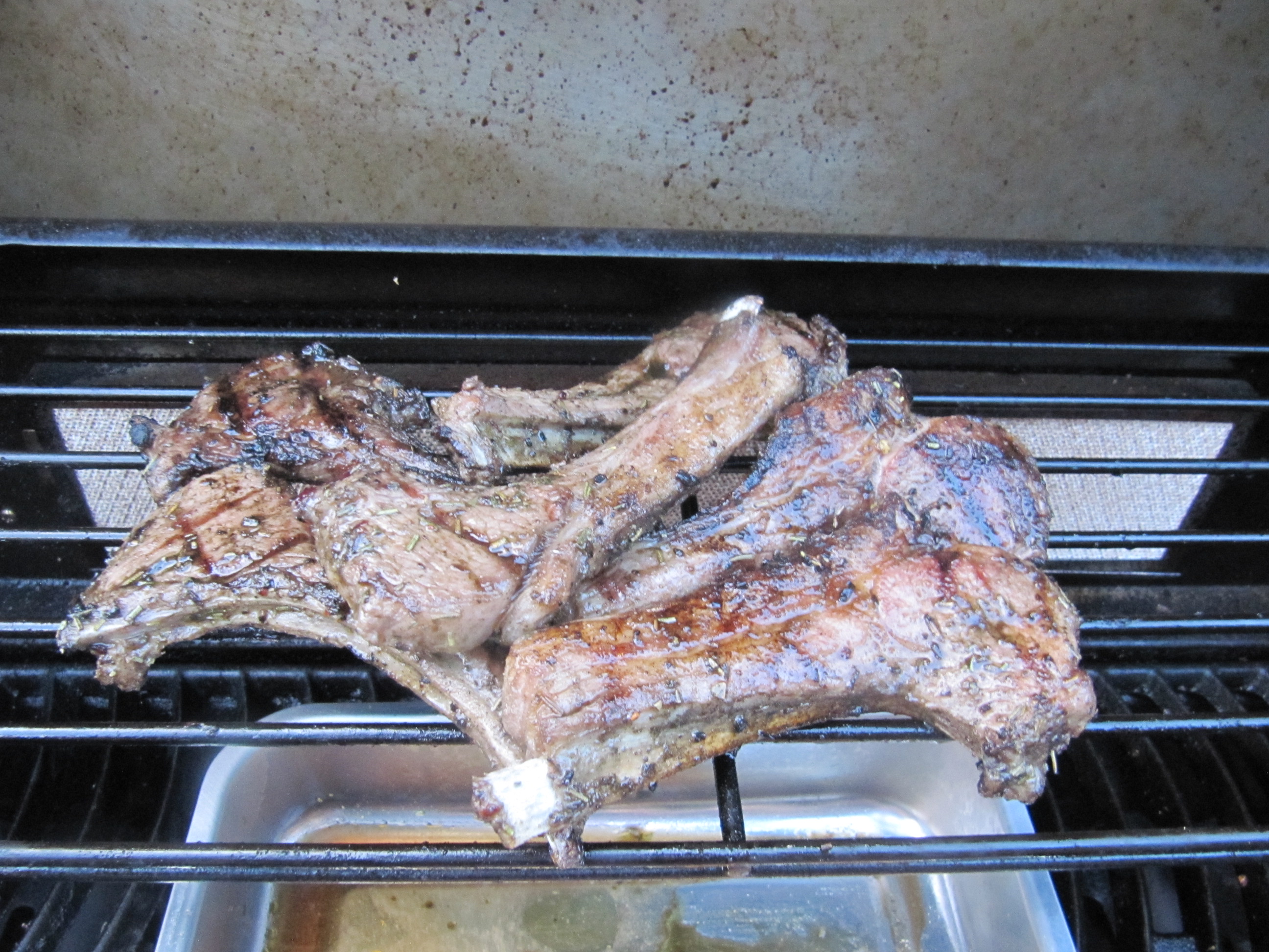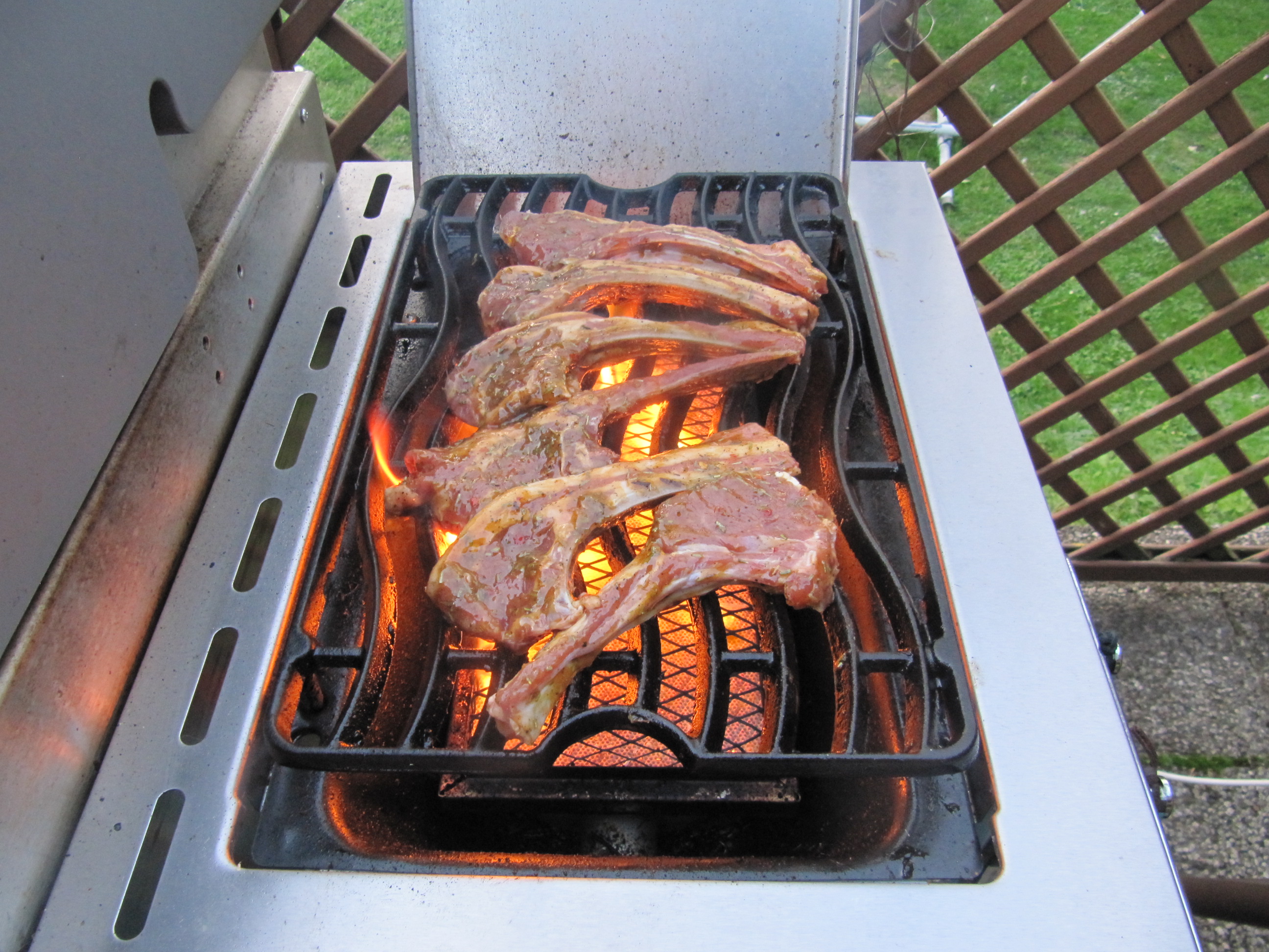 6 Stk. Lammkotelett mit 1 Pkg. mediterraner Grillmarinade von Hofer marinieren. Nach 1 Std. aus Kühlschrank nehmen und Zimmertemperatur annehmen lassen. Auf jeder Seite bei starker direkter Hitze ( Sizzle-Zone ) 2 Minuten grillen, danach am Warmhalter 5 Minuten rasten lassen. ( Es ist ein Foto meines geernteten Kürbis „Langer von Neapel“ dabei. Er hat ein Gewicht von 18 Kg erreicht ! )