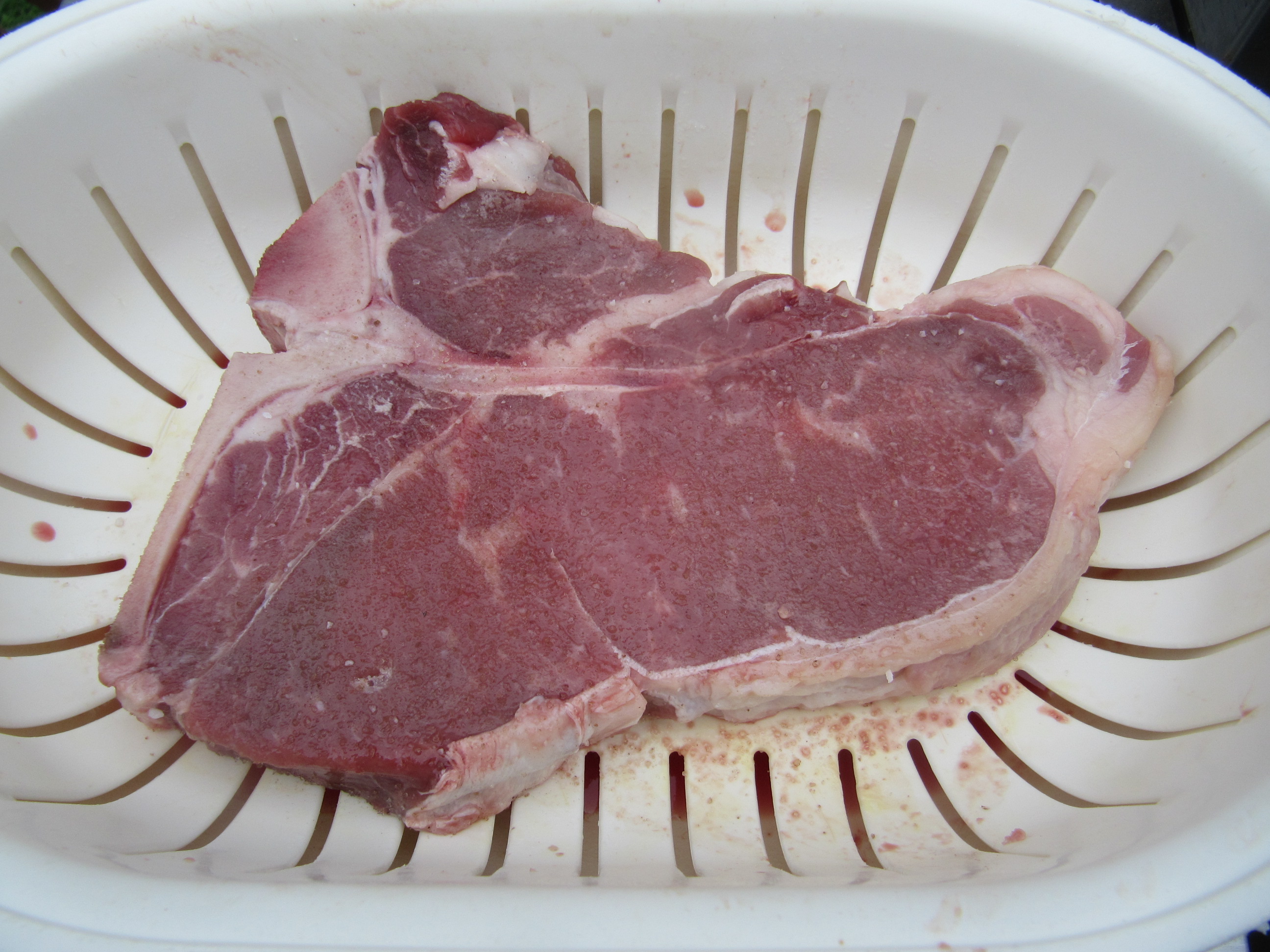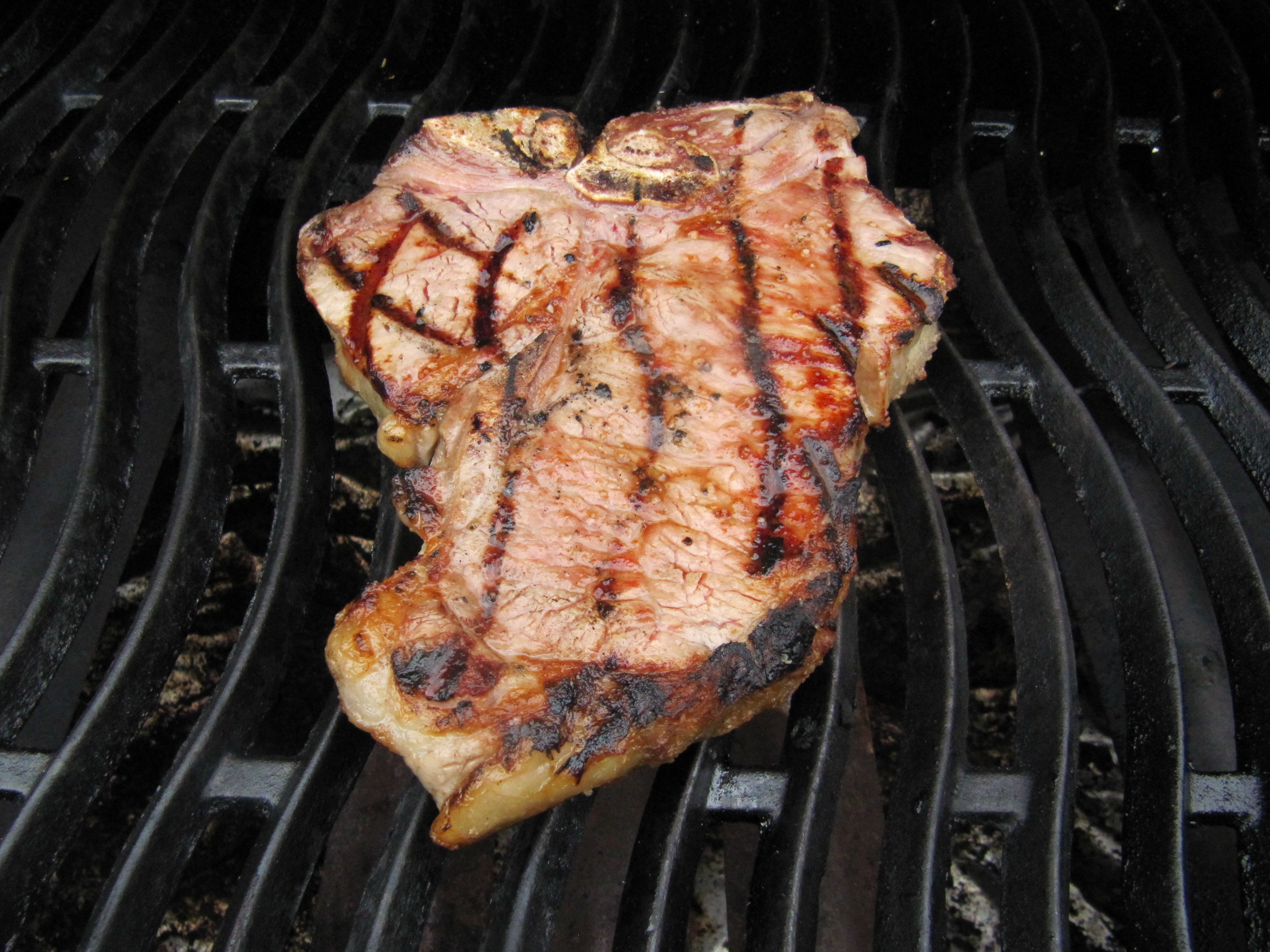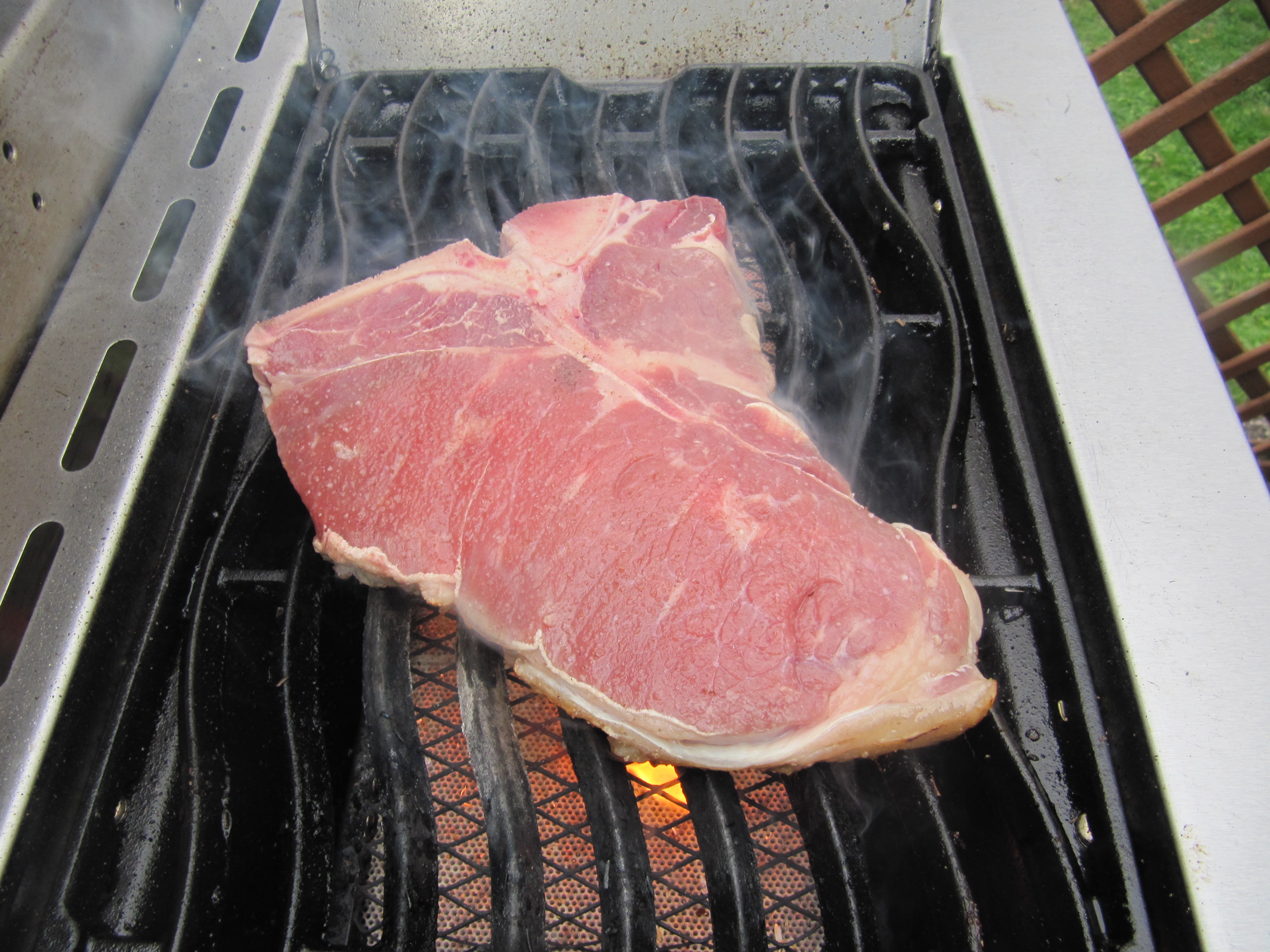 Steak mit frisch gemahlenem Kalahari-Rauchsalz salzen, Zimmertemperatur annehmen lassen und bei starker direkter Hitze auf der Sizzle-Zone auf jeder Seite 2 1/2 Minuten scharf anbraten ( wegen Grillmuster bei halber Zeit um 90° drehen ! ) Mit frisch gemahlenem tasmanischem Bergpfeffer würzen und bei niedriger indirekter Hitze 10 Minuten ruhen lassen.