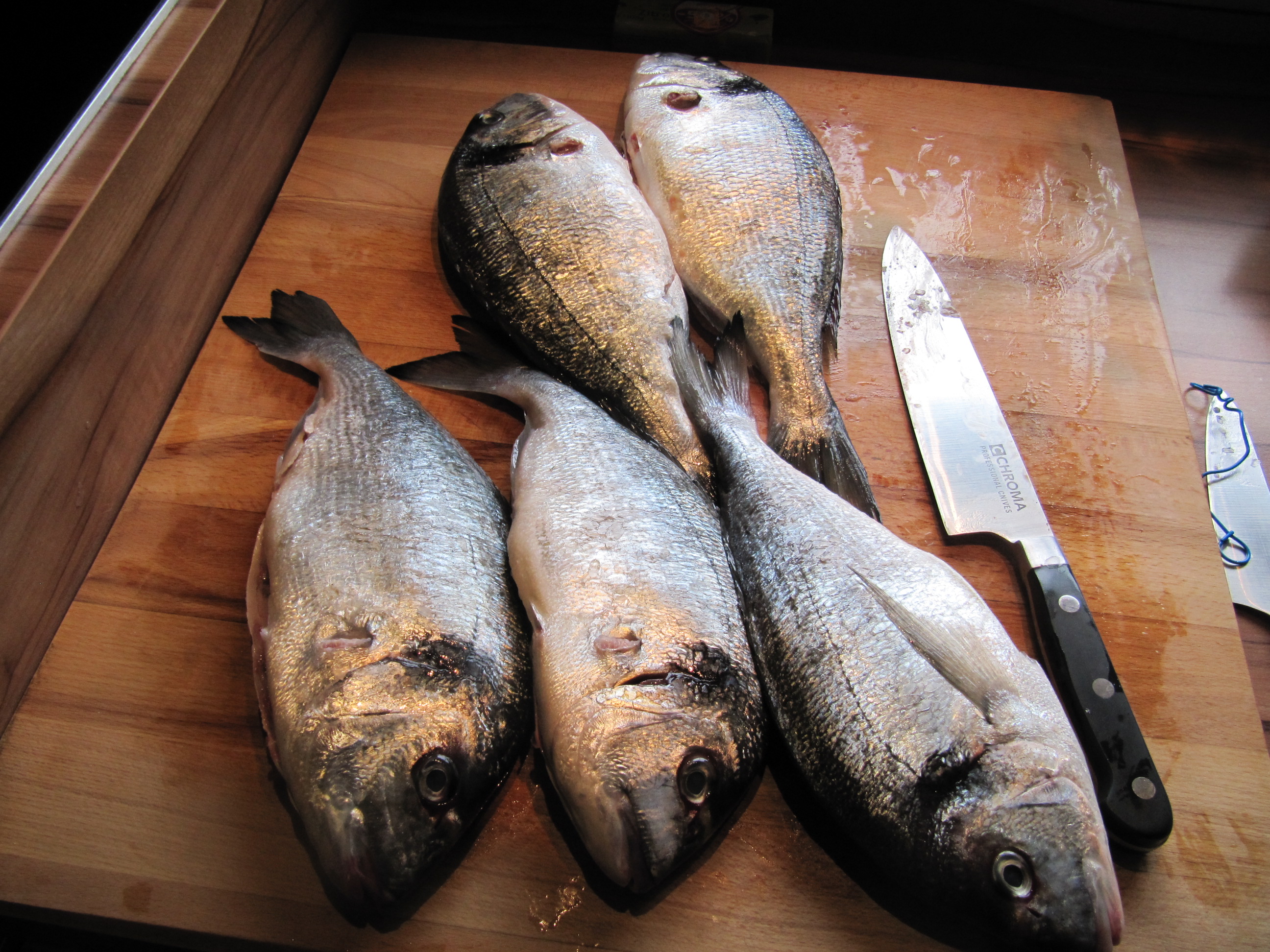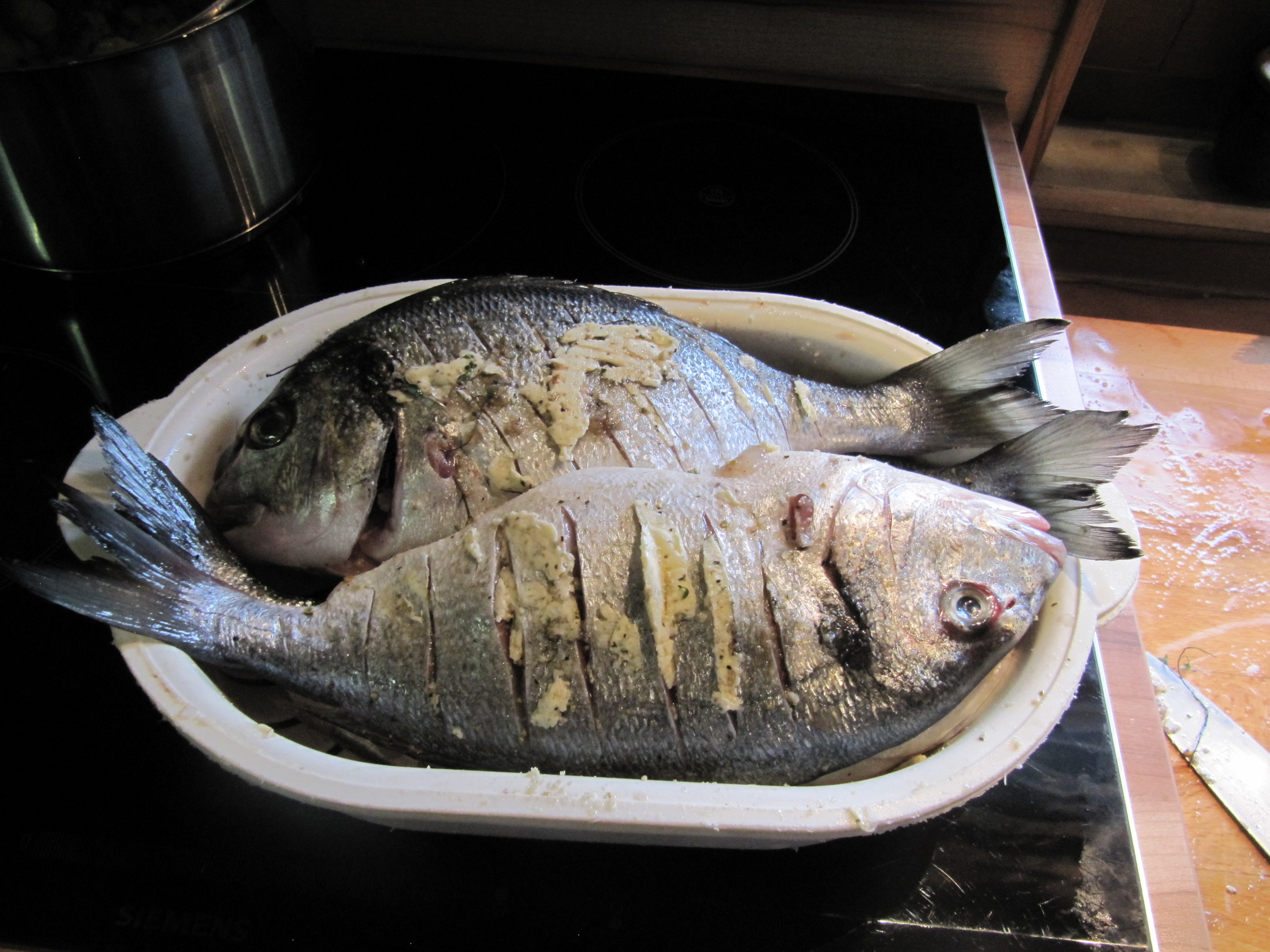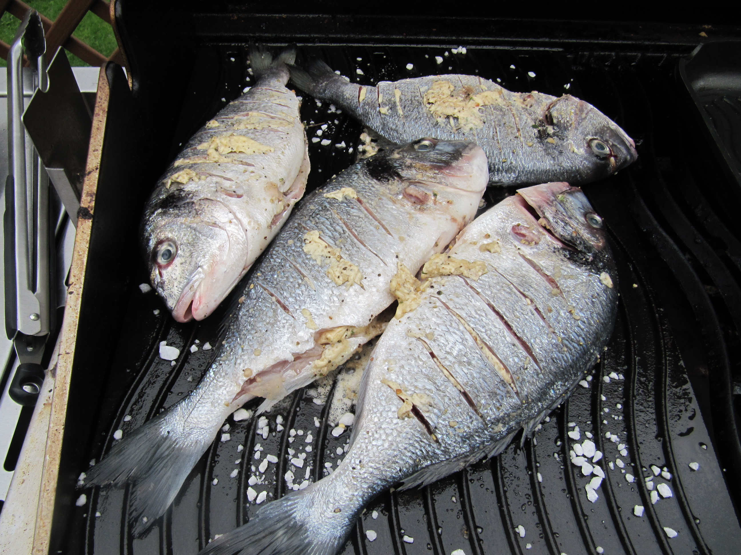 bei Metro hat´s heute frischen Fisch gegeben. Da musste ich natürlich 5 Stk. Goldbrassen mitnehmen, welche zufälligerweise auch noch in Aktion waren. Mit Petersilkartoffeln und Fisolensalat ergaben diese ein wunderbares Grillmenü.