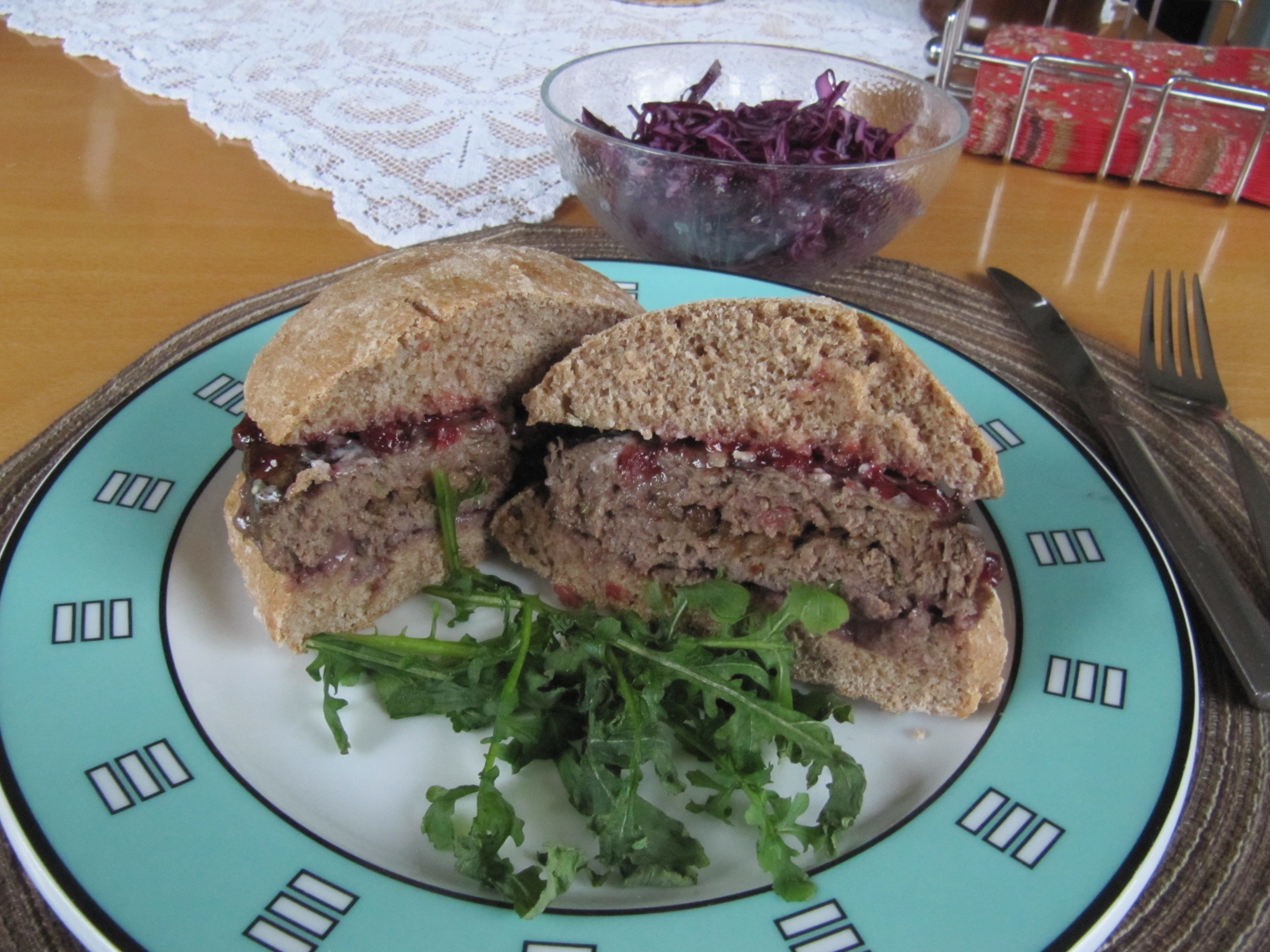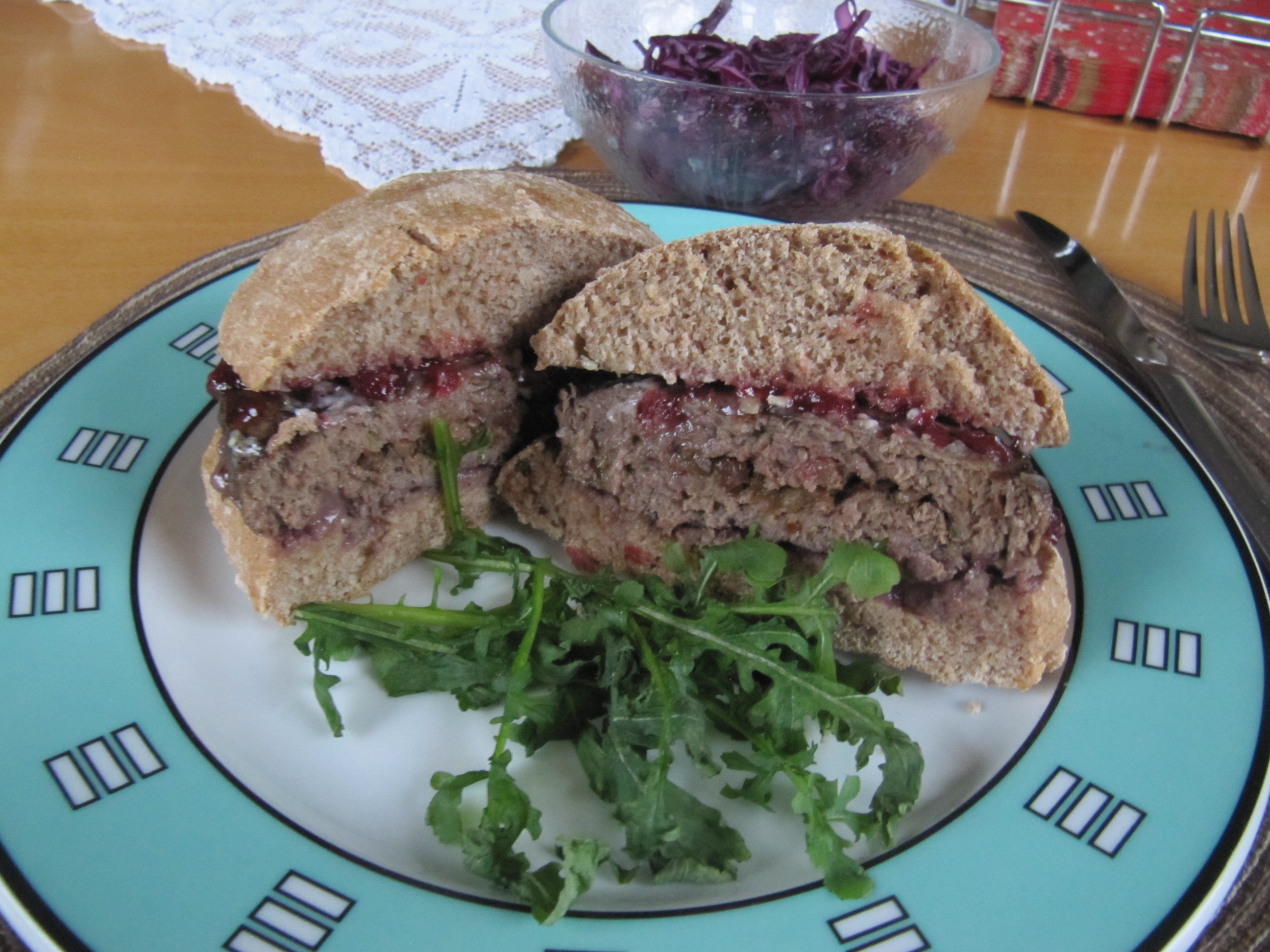 Rezept Nr. 73 : Mein Reh-Burger im Vollkorn-Bun mit Rotkrautsalat.