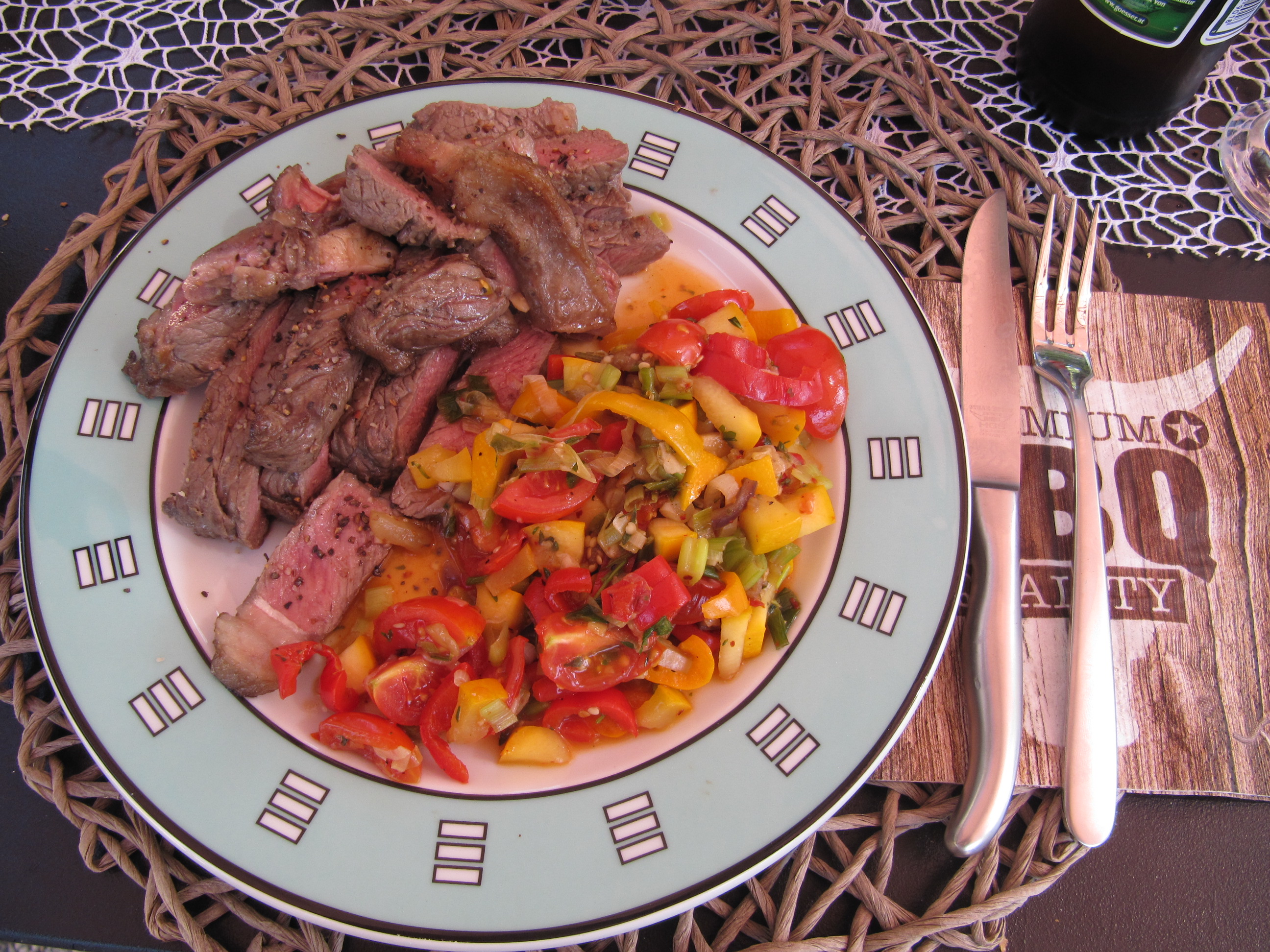 heute kommt einmal Skirt-Steak auf die Sizzle-Zone. Dieses Fleisch ist eigentlich das Zwerchfell vom Rind und ist auch als Kron- oder Saumfleisch bekannt. Es ist dünn, sehr fein marmoriert, grobfaserig und hat einen intensiven Fleischgeschmack. Billig ist es noch dazu! Die Gemüse Tortilla hat sehr gut dazu geschmeckt! (Schmeckt auch alleine als vegetarisches Gericht!).