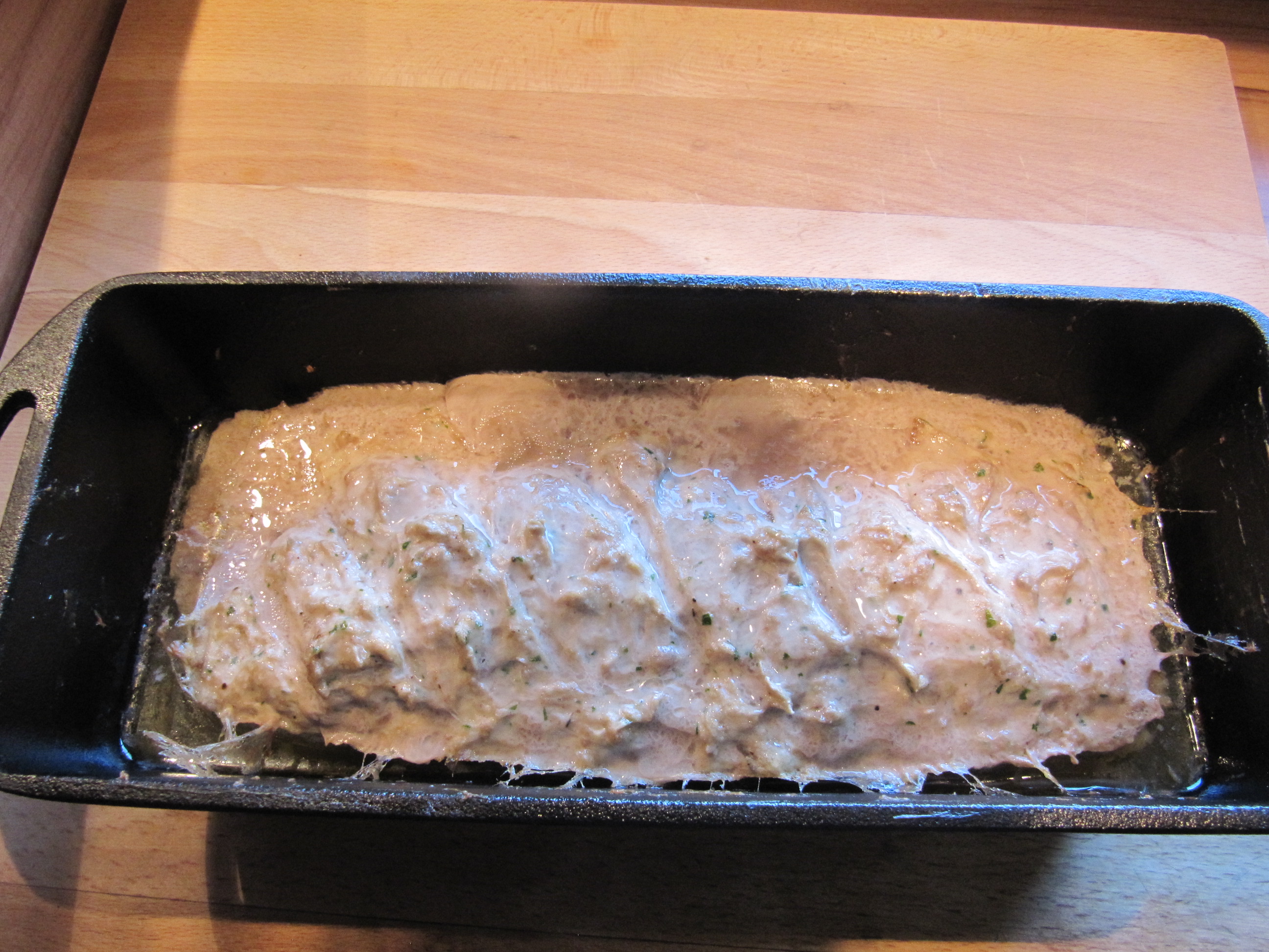 Heute am 03.01.2017 habe ich Weißen Leberkäse aus dem Thermomix ® zubereitet. Diese Variante ist in speziell in Bayern bekannt. Da bewusst auf Nitritpökelsalz und Umrötungsmittel verzichtet wurde, ist er eben weiß geworden. Auch die Zutaten sind „edler“ ausgefallen als bei der Supermarktqualität und machen ihn zu einer schmackhaften Spezialität !